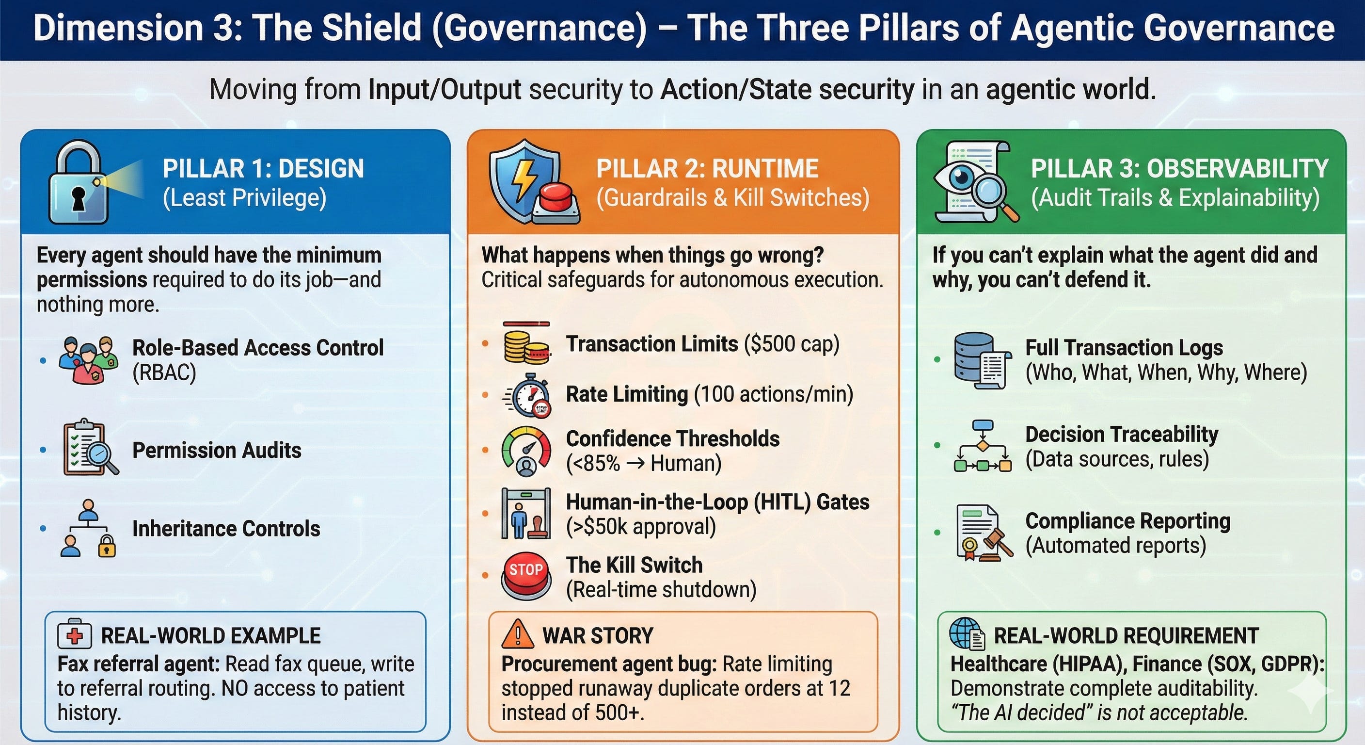The Three Pillars of Agentic Governance