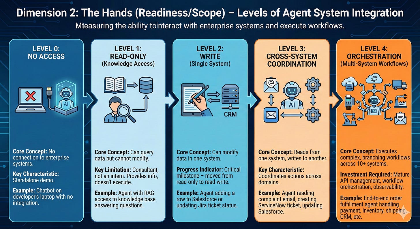 The Hands (Readiness/Scope): What systems can the agent actually touch?