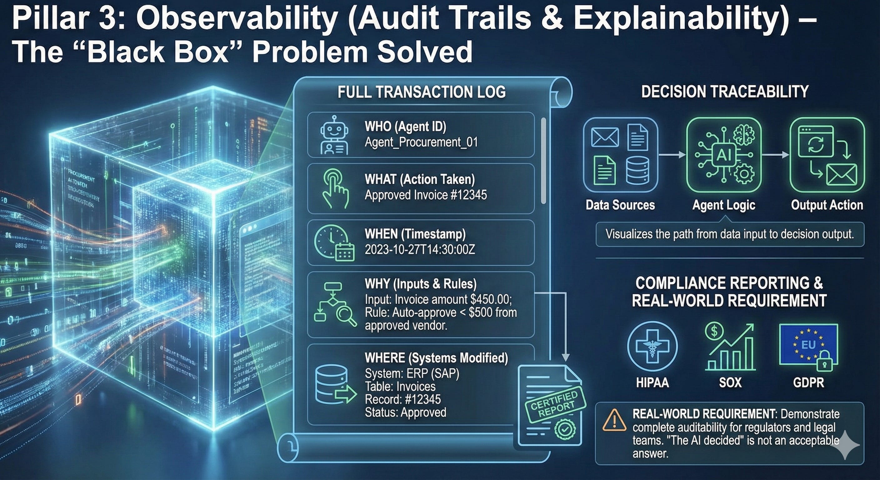 If you can’t explain what the agent did and why, you can’t defend it in court or to regulators.
